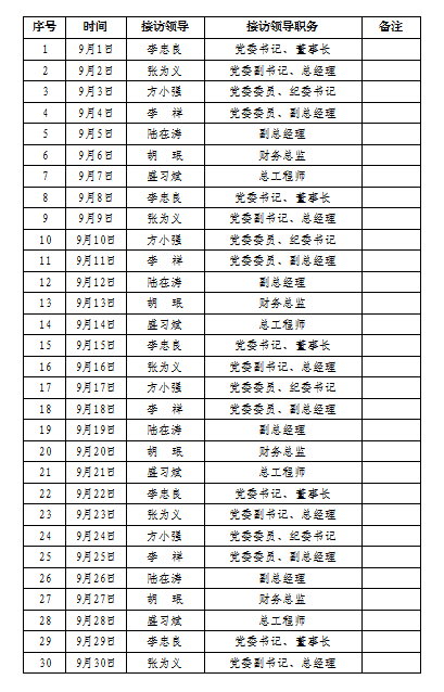 2022年安徽皖能环保发电有限公司领导接访安排表(9月)