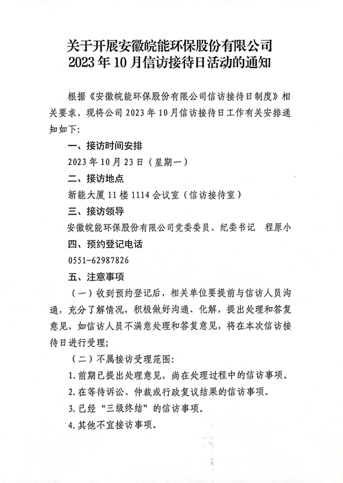 关于开展2023年10月信访接待日活动的通知