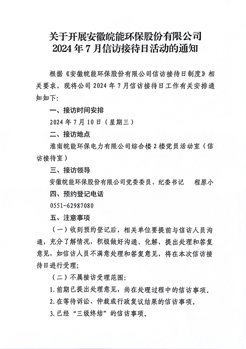 关于开展2024年7月信访接待日活动的通知