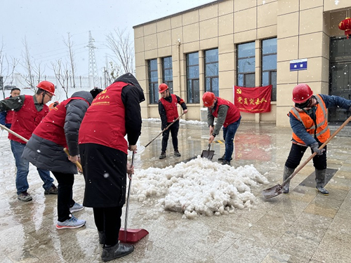 风雪虽无情,党员有担当。在公司党支部的带领下,党员突击队员们拿着铁锹、扫帚、木推,“吹响”清除厂区积雪的集结号。除雪中,大家不畏严寒,顶着风雪,分工明确,挥舞着铁锹从入厂主干道到办公楼门前、从食堂到宿舍、从办公生活区到运行生产区,除雪活动基本覆盖了厂区的所有范围。大家你追我赶,齐心协力,配合默契,铲的铲、推的推,一点点地将积雪铲起集中堆放、集中清运,干得热火朝天,不亦乐乎,忙碌的身影构成了一道亮丽的风景线。虽然室外温度很低,但大家劳动的热情和团结的力量让这个冬日变得格外温暖。