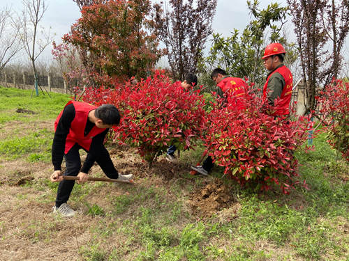党员服务队的同志们有的挥锨挖树,有的为绿植培土,铲土填坑,大家齐动手,互相配合,移树现场一派热火朝天的繁忙景象。这次移树活动,展示了共产党员的先进形象,弘扬了“奉献、友爱、互助、进步”的志愿者服务精神,进一步强化了保护生态平衡和绿化环境的责任意识,增强了员工们的凝聚力和团队精神。 在大家的共同努力下,一棵棵绿植傲然挺立,传递着春天的生机与活力。