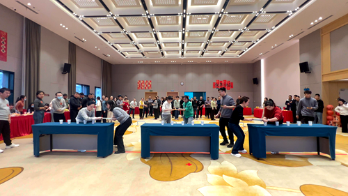 活动现场,“纸杯传福”“一鹿有你”“好运乒乓”“蛇舞新春”等趣味项目轮番进行,7支参赛队伍在公司领导的带领下,斗志昂扬地投入到一个个比赛小项中。接力赛上队员们沉着冷静,凭借着出色的控制力稳步向前,现场加油声不断,为参赛者注入了无限动力。套圈比赛中,队员们默契配合,策略与技巧并重,每一圈都扣人心弦,展现了团队协作的力量。现场的呐喊声、欢笑声交织在一起,气氛热烈非凡。