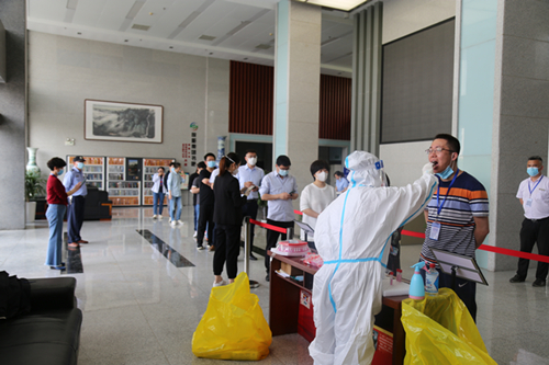 为保障核酸检测工作顺利开展,公司提前部署,周密筹备。核酸检测过程中,参检职工听从安排,不扎堆、不聚集、不聊天,全程佩戴口罩,自觉执行“一米线”规定。通过检测机构、物业和公司的协作配合,现场忙而有序,最终快速高效完成全员核酸采样工作。