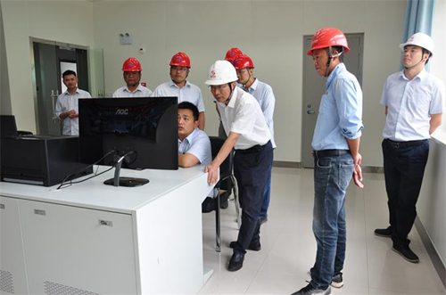 张为义一行首先深入餐厨项目现场,实地查看了餐厨项目的预处理车间、集控室等,详细听取项目负责人关于餐厨垃圾收运、设备运行、尾工推进等情况的汇报,并与员工亲切交流,深入了解一线员工工作情况。他指出,一要严格做好安全管控工作,时刻绷紧安全弦,做好隐患排查和风险管控,特别强调厌氧罐可燃易爆气体监视控制;二是加快推进项目边坡挡墙及项目收尾工作,确保边坡挡墙建设及项目后续收尾工作快速、稳步推进;三是优化综合处理车间设备逻辑,完善运行规程、系统图、电仪保护定值等,确保由基建到生产经营平稳过渡。