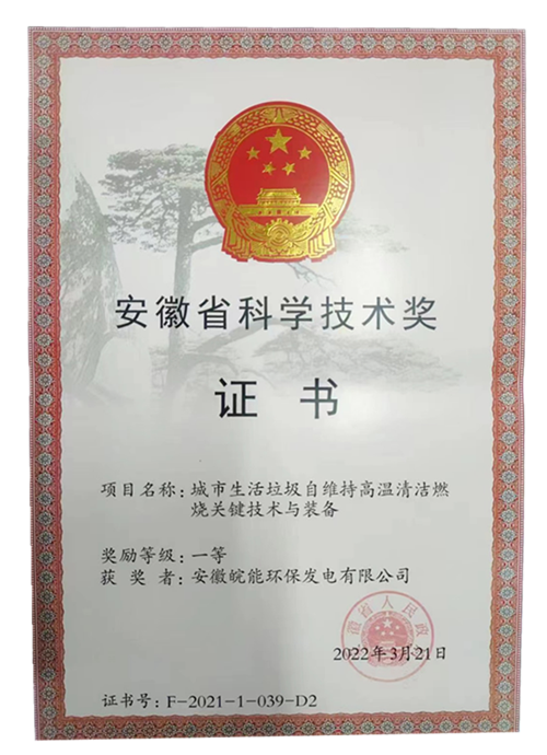 在刚刚闭幕的安徽省科学技术奖励大会上,由安徽皖能环保发电有限公司联合合肥工业大学先进能源技术与装备研究院研发的《城市生活垃圾自维持高温清洁燃烧关键技术与装备》成果,喜获2021年安徽省技术发明一等奖,系安徽国资系统本次唯一获得的一个技术发明一等奖。