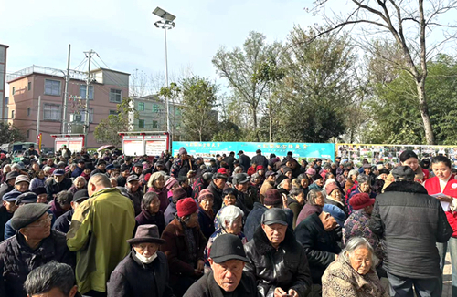 11月15日,临泉县滑集镇南杨小庄村村民活动广场人头攒动、热闹非凡,不少老人满怀期待,一大早就来到了这里。