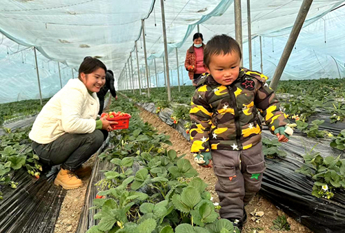 又到草莓上市季。眼下,在组团帮扶村——临泉县滑集镇南杨小庄村,一个个草莓种植大棚里热闹非凡。绿盈盈的草莓苗生机盎然,红艳艳的草莓果馨香诱人,摘草莓、拍照片、晒朋友圈的游人络绎不绝,配合着草莓沁人心脾的芬芳,奏起了和美乡村的幸福乐章。