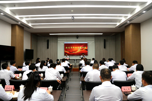 为适应新形势下公文信息写作的特点和要求,进—步提升公司系统广大员工的公文写作水平和履职尽责能力,提高公文质量与办公效率,8月7日,皖能环保公司举办2024年公文写作业务培训。公司党委副书记方小强参加开班式,公司各部门及各子公司相关人员近60人参加培训。