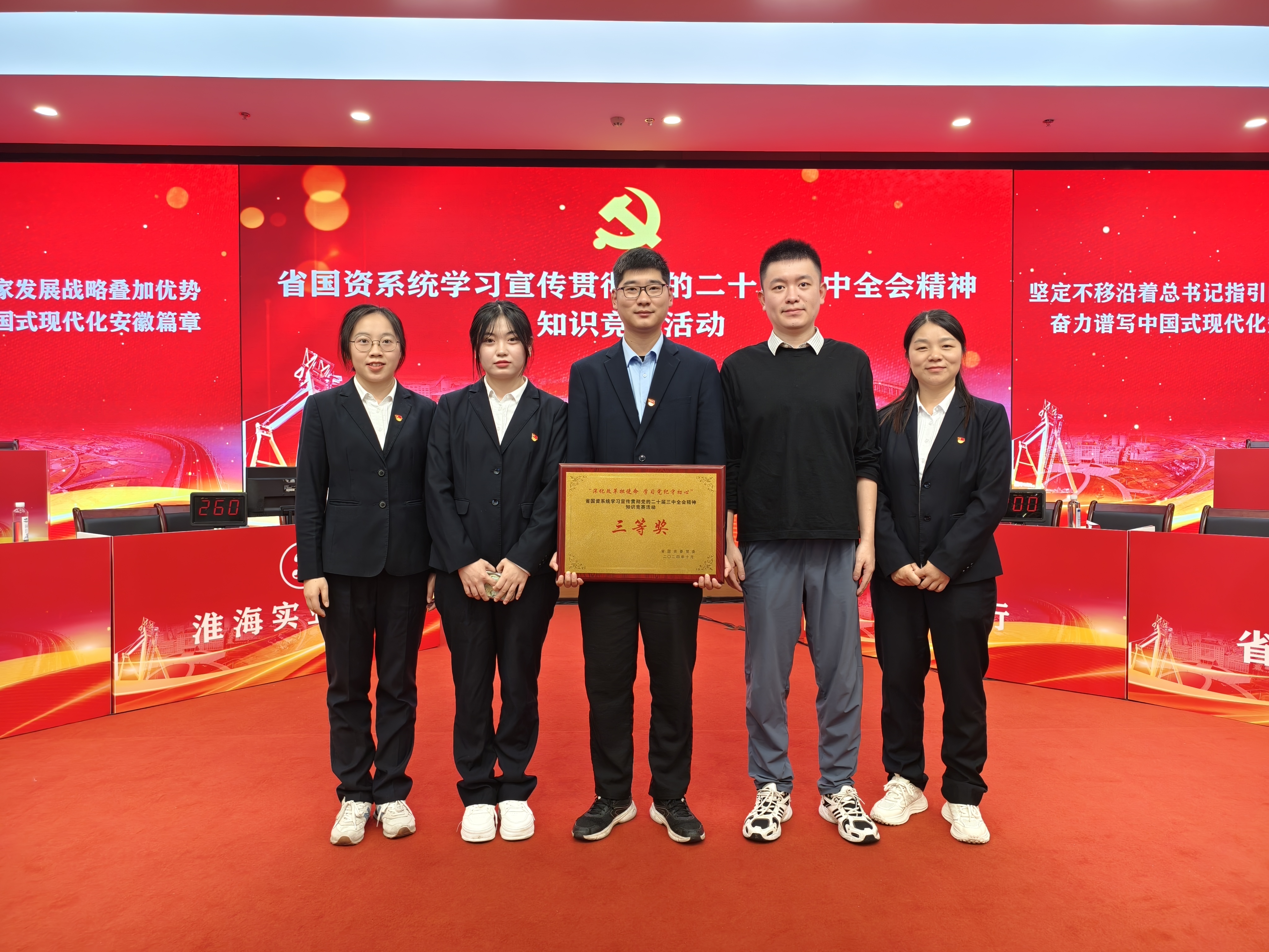 近日,省国资委党委在肥举办省国资委系统学习宣传贯彻党的二十届三中全会精神知识竞赛决赛,滁州皖能环保公司高超和环境科技淮南公司石锦云作为队员代表集团公司出战,经过紧张激烈的角逐,集团代表队最终从32支参赛队伍中脱颖而出,荣获三等奖。