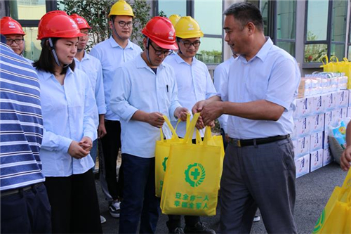 进入高温酷暑季节,为关心生产一线员工, 7月20日,临泉县委副书记、县长梁永勤及县总工会副主席刘振兴等一行到临泉皖能环保公司进行开展“夏日送清凉”慰问,为临泉皖能环保公司一线员工送来了绿豆、白糖、矿泉水、仁丹等防暑降温用品。