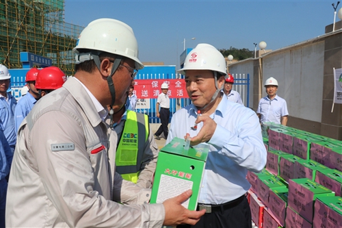 朱宜存一行先后察看了综合办公楼、主厂房、渗滤液处理站等施工作业区域和一线员工宿舍区,检查防暑降温工作落实情况并慰问一线员工,详细了解各单位防暑降温、安全生产工作开展情况,并将慰问品送到一线员工手中。朱宜存叮嘱大家在高温天气下要合理安排好作息时间,注意劳逸结合,防止高温中暑,避免发生安全事故。