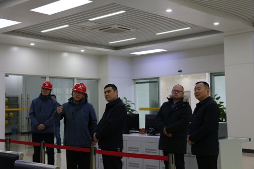 常利华一行实地参观了阜阳公司集控室、垃圾吊等区域,通过讲解介绍以及观看监控操作系统,对垃圾焚烧发电的工艺流程、机组运行及垃圾处理规模等生产运营情况进行详细了解。