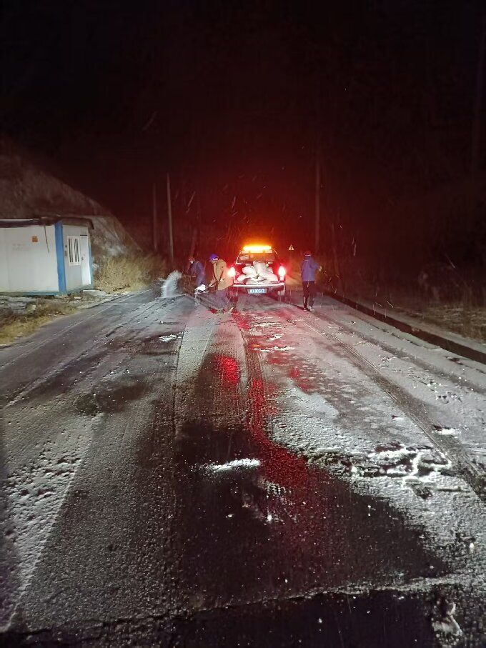 面对突如其来的降雪,龙泉山公司第一时间响应。公司负责人带领党员突击队,顶着凛冽寒风和纷飞大雪,对厂区主要运输道路进行全面巡查。针对积雪较厚、易结冰的路段,迅速调配融雪盐等物资,对关键路段进行融雪除冰处理。夜间气温低、能见度差,作业人员克服重重困难,争分夺秒清理积雪,确保每一段运输路线都安全畅通。