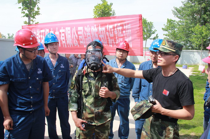 本次演练的场所设在燃油库东门外。首先由担任本次演练的总指挥,淮南公司负责人宣布火灾应急演练开始,接着现场人员在凤台县消防大队两位教官的指挥下,在淮南市市容管理局相关人员的监督下,认真地完成了准确报火警、使用干粉灭火器扑灭初期火灾和疏散逃生等演练内容。在演练过程中,教官手把手指导生产人员使用正压式呼吸器和气体检测仪。