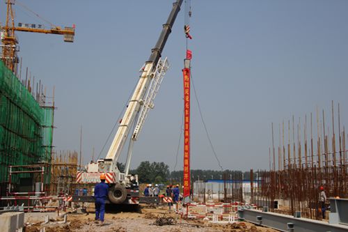 上午9点58分,在经过精密组织、精心准备、安全技术交底充分的基础上,长丰环保公司生活垃圾焚烧发电项目第一根长13米、重约4吨的锅炉钢架在起重机马达轰鸣声中缓缓吊向钢架基座,吊装过程一气呵成。
