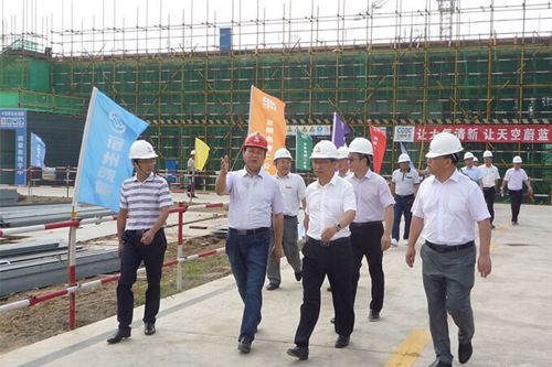 8月2日上午8:10分,宿州市埇桥区区长张建军率区政府督查办、发改委、国土局、住建局、大泽乡政府的相关部门负责人一行十余人,深入宿州公司项目工程现场办公,察看工程进度,了解工程推进过程中存在的问题和遇到的困难,对土地转让手续办理等相关问题作出具体指示,要求区政府相关部门加强对口衔接,实施限期办理。