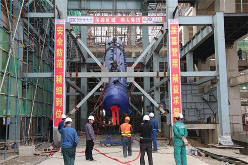 临泉皖能环保公司锅炉汽包成功吊装就位