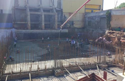 该垃圾坑自5月10日开始进行土方开挖,先后完成桩基检测、承台地梁砌筑、垫层施工等一系列工作,历时45天完成垃圾坑底板混凝土的浇筑工作。