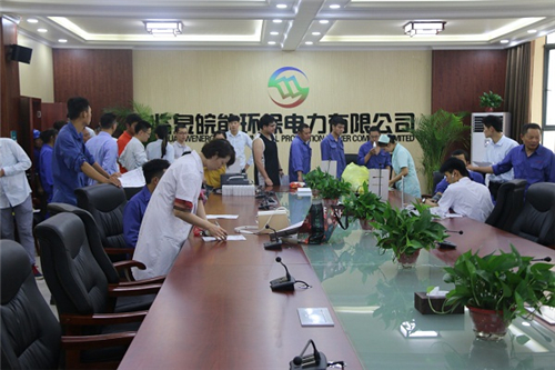 7月11日,临泉皖能环保公司组织一线职工进行职业健康体检,本单位职工和外委单位职工共计70余人接受体检。