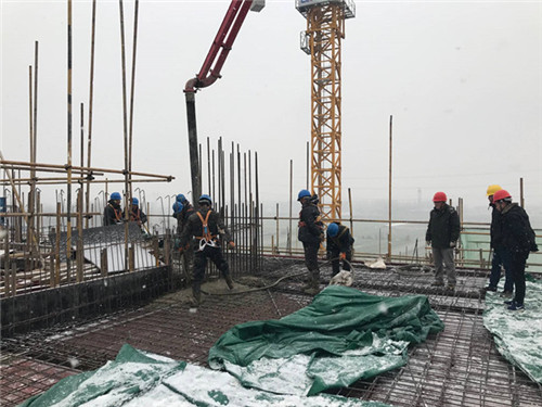 阜阳皖能环保公司二期扩建工程冒雪完成垃圾坑23.5米层砼浇筑