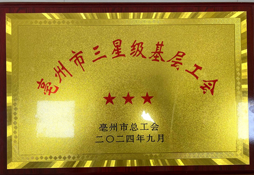 近日,利辛皖能环保公司工会被正式授牌为“亳州市三星级基层工会”。这标志着利辛公司工会规范化建设迈上了新的台阶。