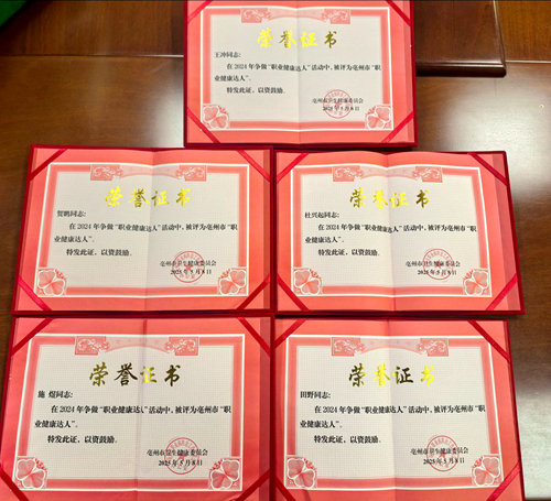 此次五名员工获评“职业健康达人”,是利辛公司长期重视职业健康工作、构建完善职业健康管理体系的成果体现。